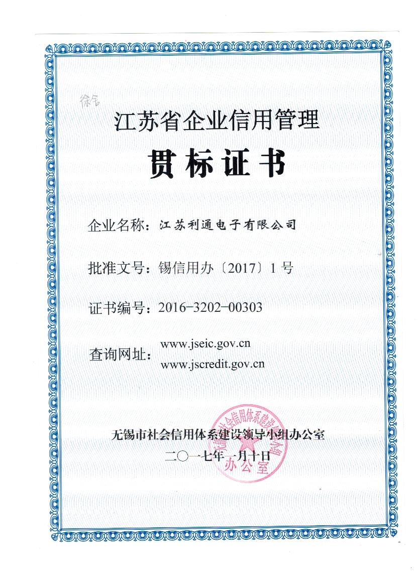 江蘇省企業(yè)信用管理貫標(biāo)證書<br /> <br />