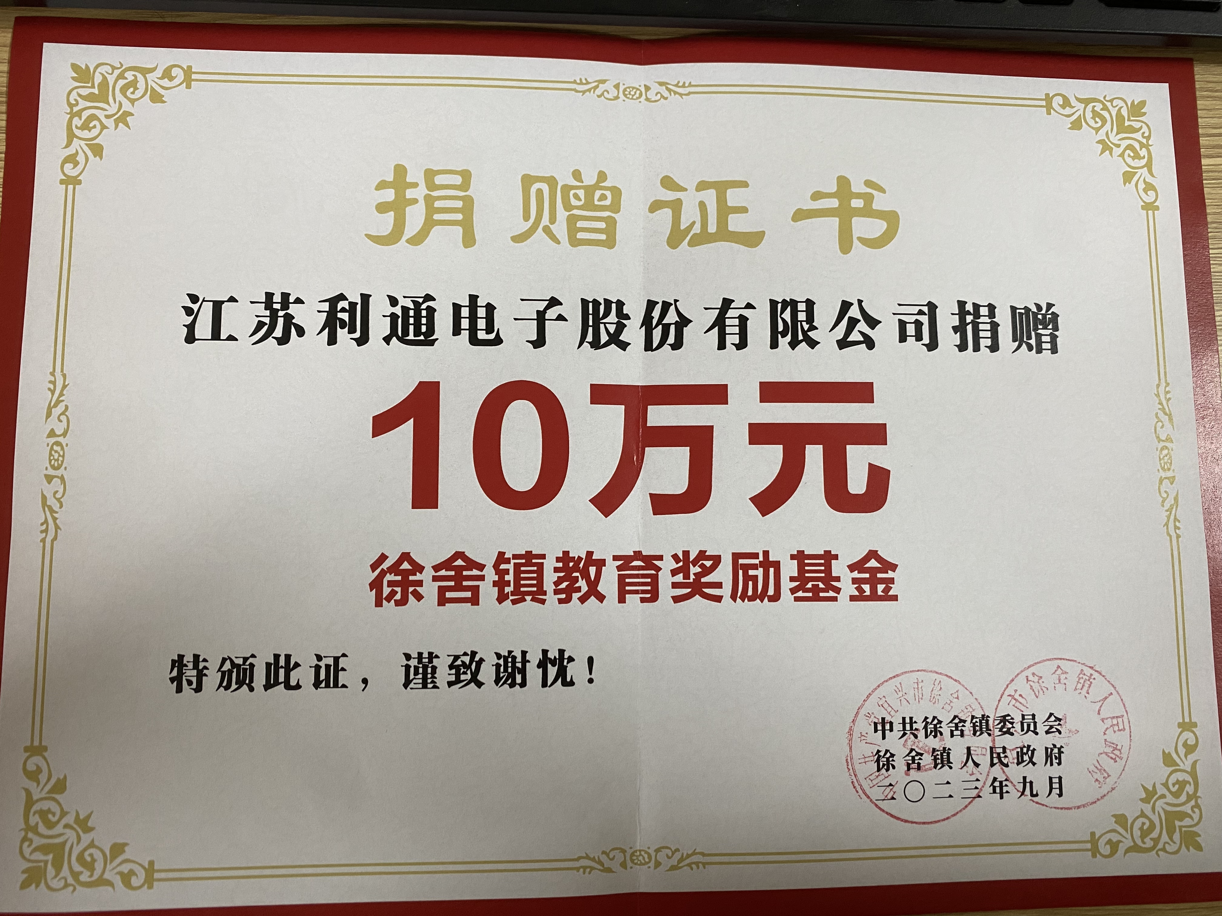 多年來,利通電子堅(jiān)持慈善捐贈,助力徐舍鎮(zhèn)教育事業(yè)發(fā)展,同時(shí)全力幫助外地員工解決落戶和子女入學(xué)問題,彰顯了我司作為本土企業(yè)的鄉(xiāng)土情懷和上市公司的責(zé)任擔(dān)當(dāng)。